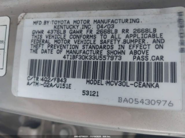 | VIN : 4T1BF30K33U557973 |
