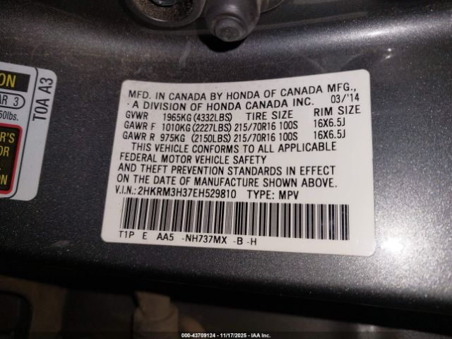 | VIN : 2HKRM3H37EH529810 |