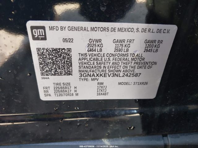 | VIN : 3GNAXKEV3NL242587 |