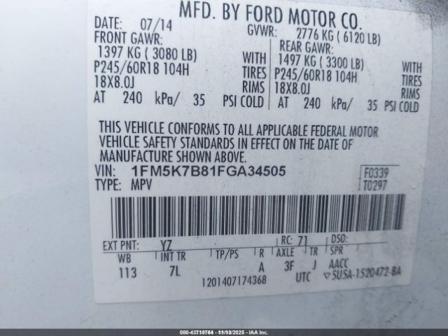 | VIN : 1FM5K7B81FGA34505 |