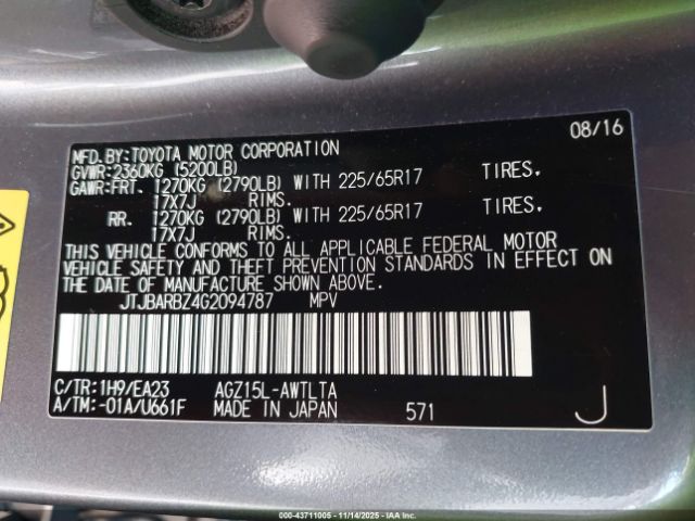 | VIN : JTJBARBZ4G2094787 |