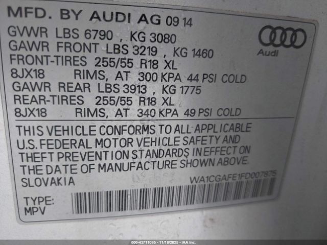 | VIN : WA1CGAFE1FD007875 |