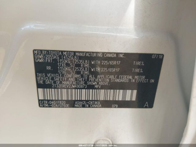 | VIN : 2T3ZFREV2JW490873 |