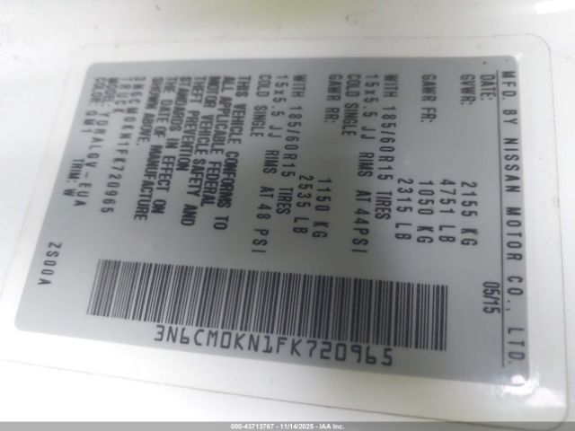 | VIN : 3N6CM0KN1FK720965 |