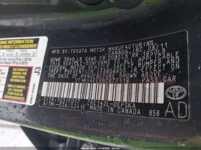 | VIN : 2T1BU4EE6BC677118 |