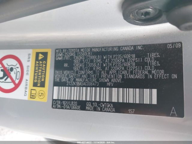 | VIN : 2T2ZK1BA5AC006473 |