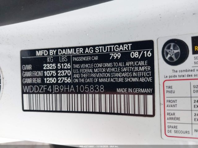 | VIN : WDDZF4JB9HA105838 |