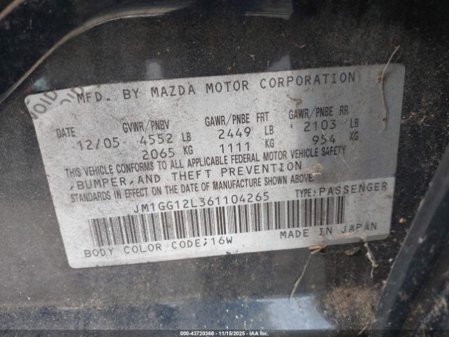 | VIN : JM1GG12L361104265 |