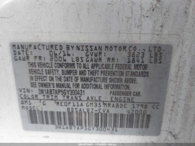 | VIN : 3N1AB7AP5GY300431 |