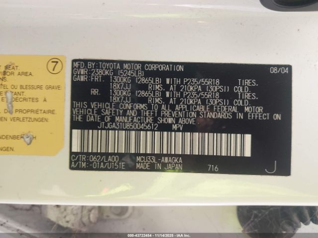 | VIN : JTJGA31U850045612 |