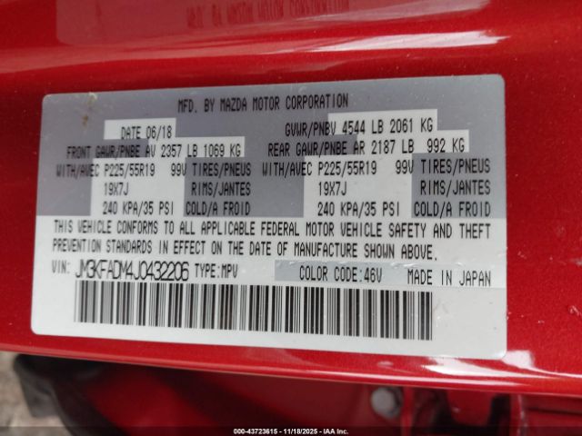 | VIN : JM3KFADM4J0432206 |