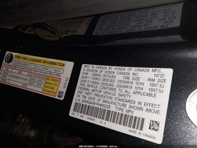 | VIN : 2HKRS6H91PH800228 |