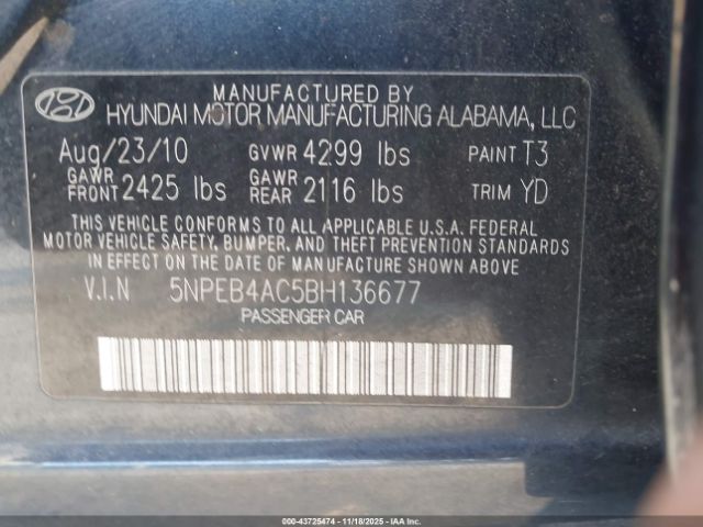 | VIN : 5NPEB4AC5BH136677 |