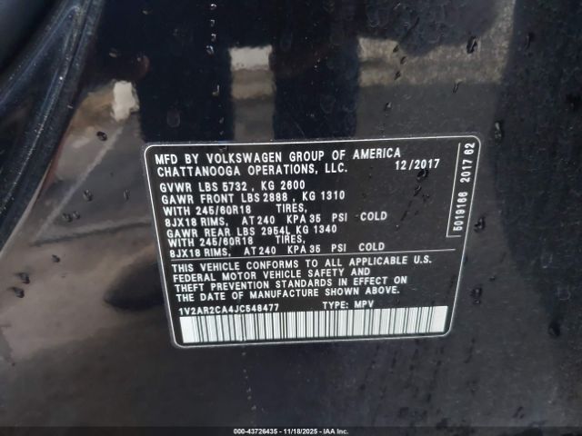 | VIN : 1V2AR2CA4JC548477 |