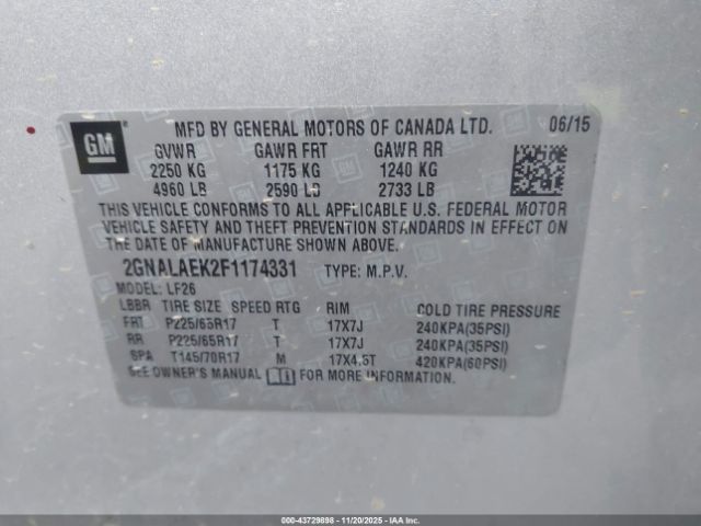 | VIN : 2GNALAEK2F1174331 |