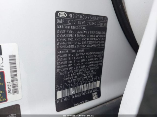 | VIN : SALRHBBV6HA041512 |