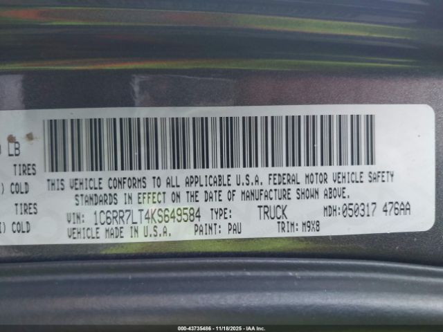| VIN : 1C6RR7LT4KS649584 |