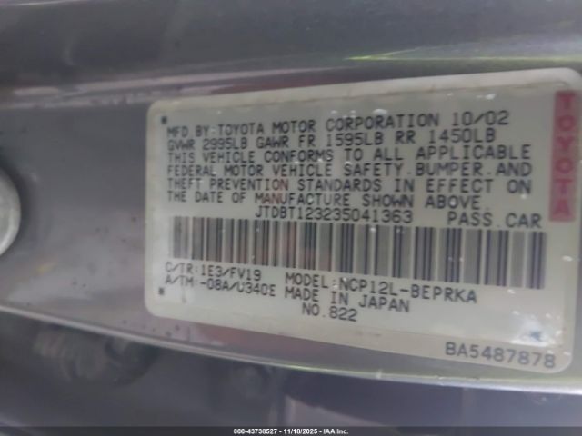 | VIN : JTDBT123235041363 |