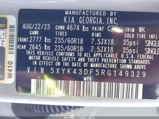 | VIN : 5XYK43DF5RG149329 |