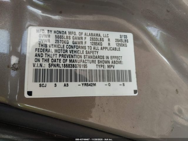 | VIN : 5FNRL18683B076195 |