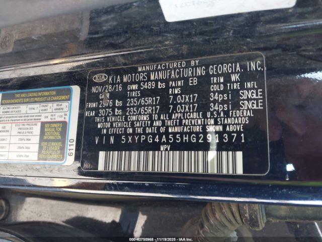 | VIN : 5XYPG4A55HG291371 |