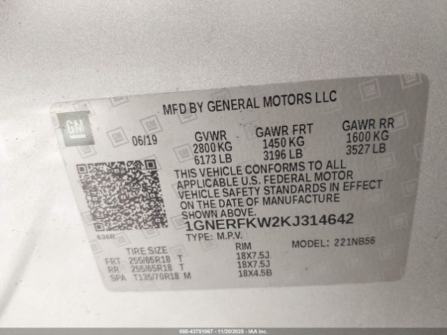 | VIN : 1GNERFKW2KJ314642 |