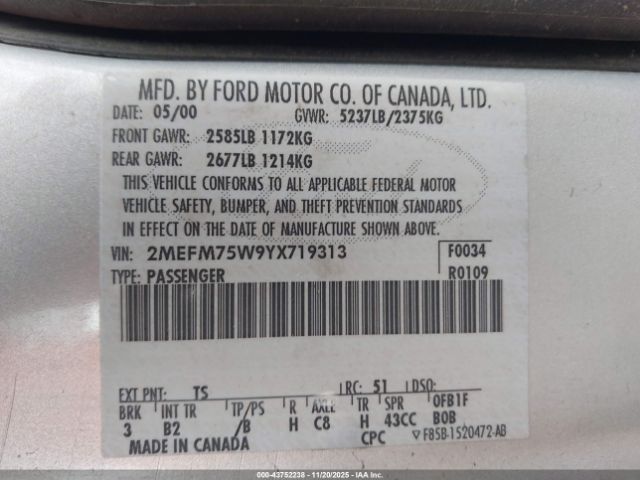 | VIN : 2MEFM75W9YX719313 |