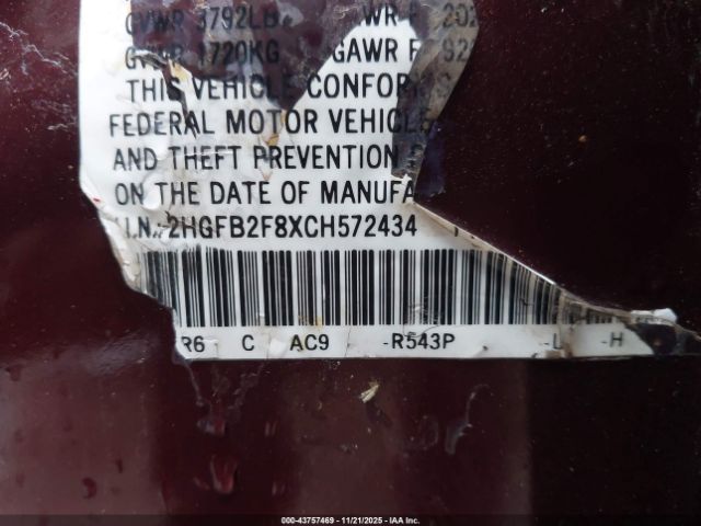 | VIN : 2HGFB2F8XCH572434 |
