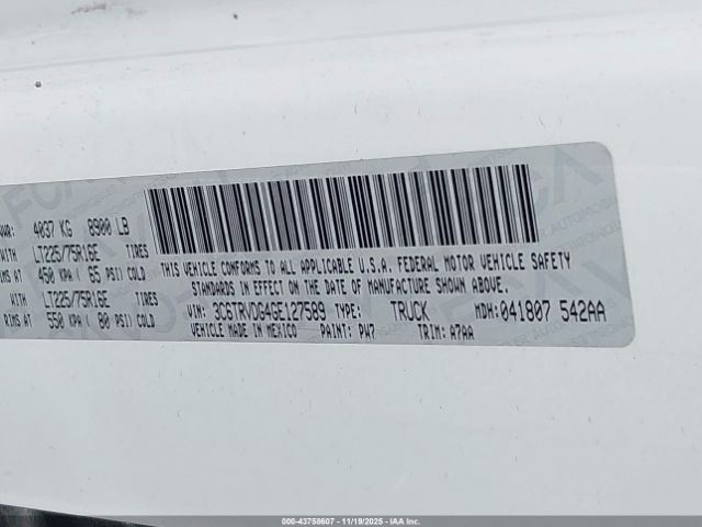 | VIN : 3C6TRVDG4GE127589 |