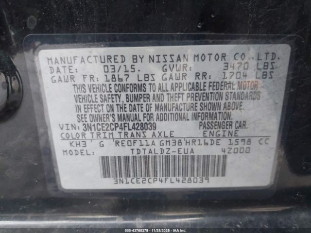 | VIN : 3N1CE2CP4FL428039 |