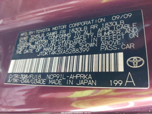 | VIN : JTDKT4K3XA5288399 |