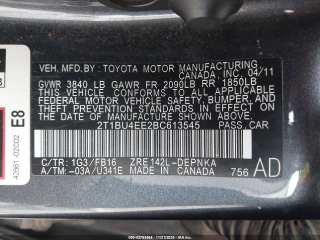 | VIN : 2T1BU4EE2BC613545 |