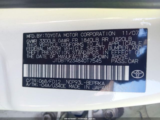 | VIN : JTDBT923484017545 |