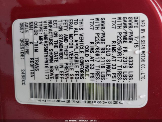 | VIN : JN8AS5MT5FW161177 |