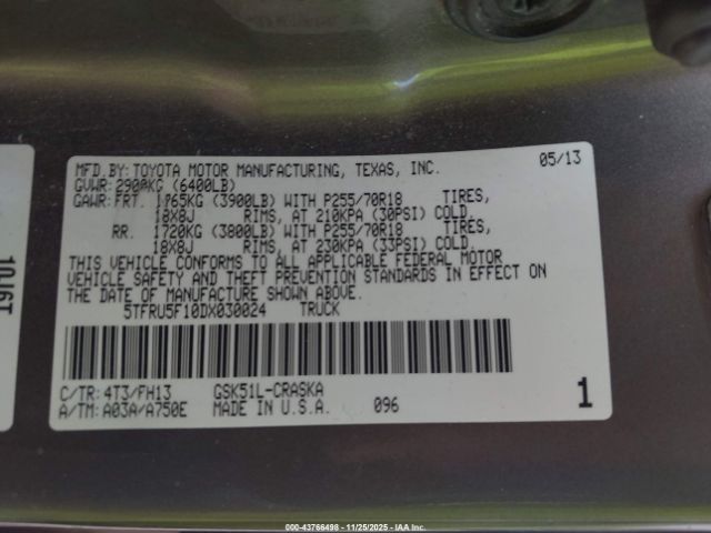 | VIN : 5TFRU5F10DX030024 |