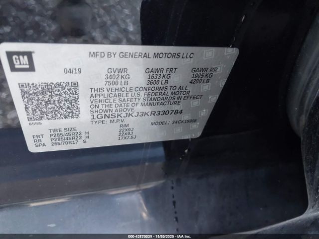 | VIN : 1GNSKJKJ3KR330784 |