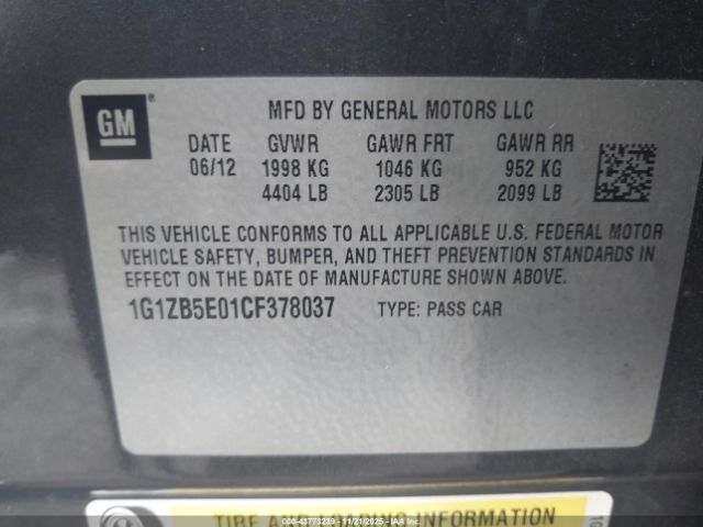 | VIN : 1G1ZB5E01CF378037 |