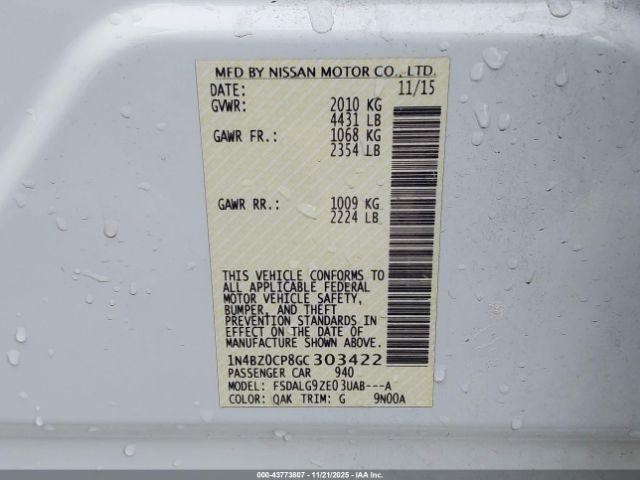 | VIN : 1N4BZ0CP8GC303422 |