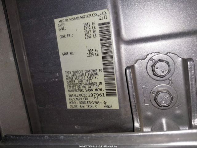 | VIN : 1N4AL2AP2CC197961 |
