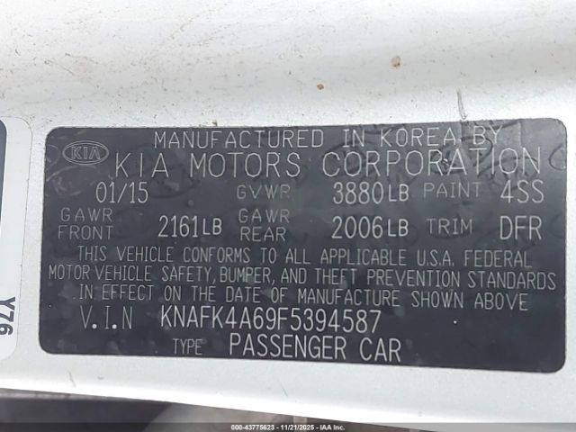 | VIN : KNAFK4A69F5394587 |