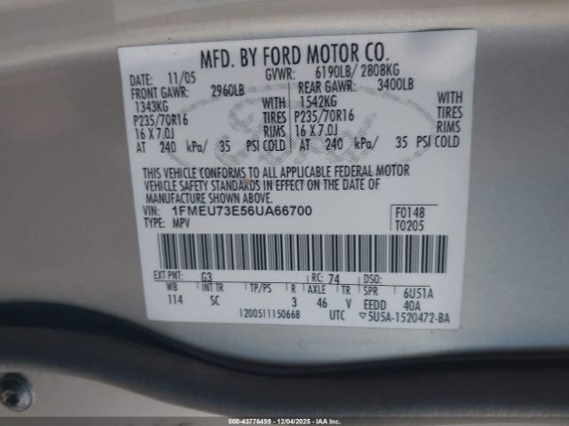 | VIN : 1FMEU73E56UA66700 |