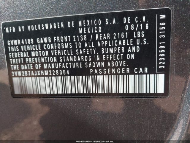 | VIN : 3VW2B7AJXHM228354 |