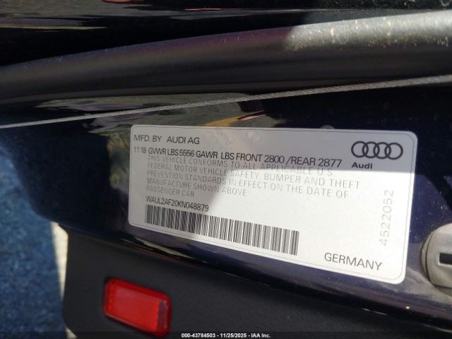 | VIN : WAUL2AF20KN048879 |
