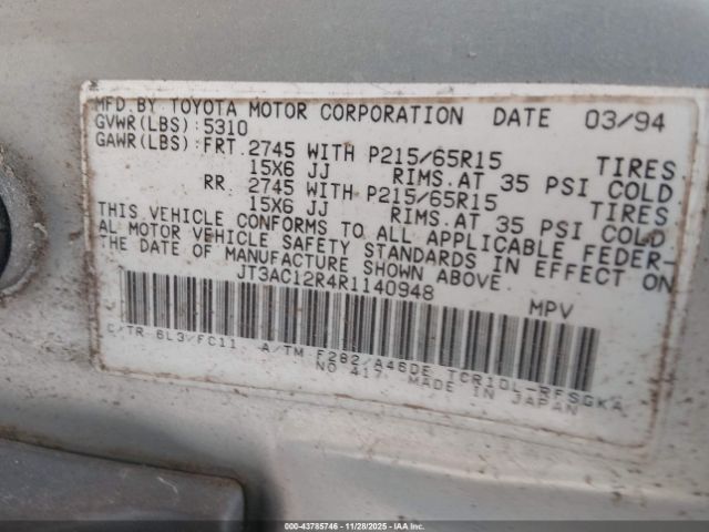 | VIN : JT3AC12R4R1140948 |