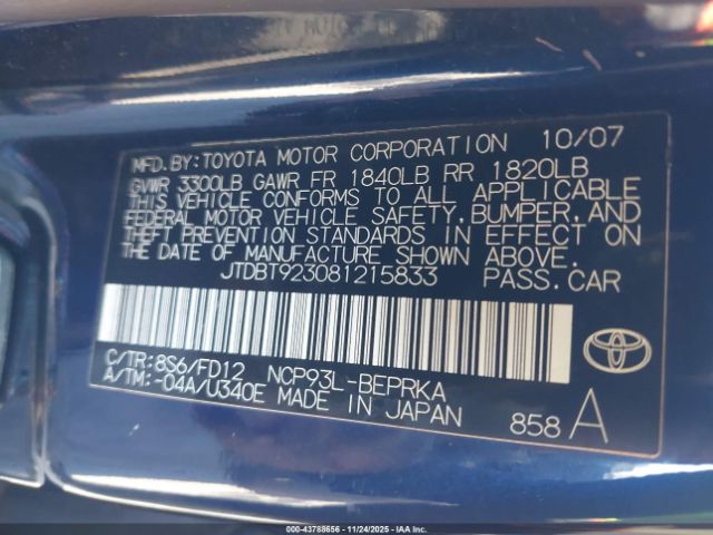| VIN : JTDBT923081215833 |