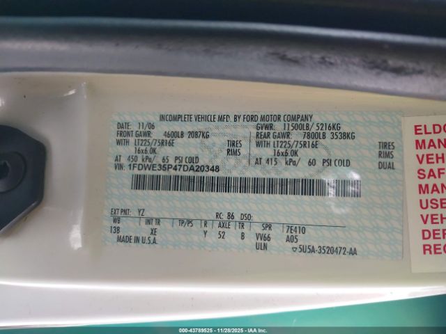 | VIN : 1FDWE35P47DA20348 |