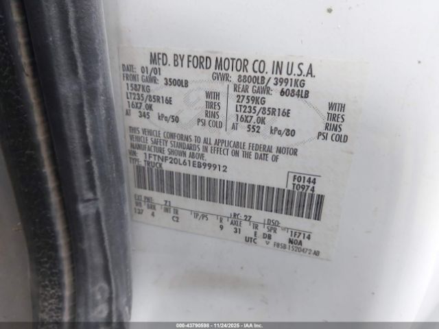 | VIN : 1FTNF20L61EB99912 |