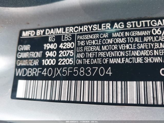 | VIN : WDBRF40JX5F583704 |
