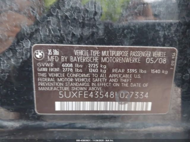 | VIN : 5UXFE43548L027334 |
