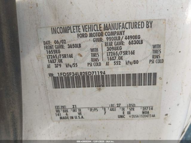 | VIN : 1FDSF34L82ED71194 |